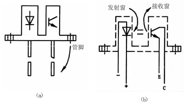 圖1 示出透射、隔離式光電開關(guān)的外形及內(nèi)部構(gòu)造。光電開關(guān)的用途極廣,可構(gòu)成液位、轉(zhuǎn)速、流量傳感器,還適用于自動(dòng)售貨機(jī)、保安裝置、通信設(shè)備中。
