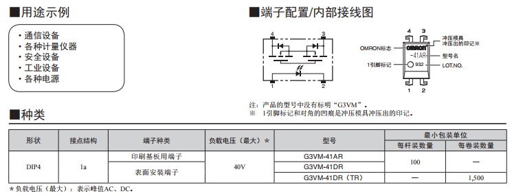 G3VM-41DR MOS FET繼電器 實現了堪比機械式繼電器的導通電阻50mΩ!DIP40V產品、實現大電流2.5A開閉的MOS FET繼電器 連續負載電流2.5A。 可用于微笑模擬信號的開關。
