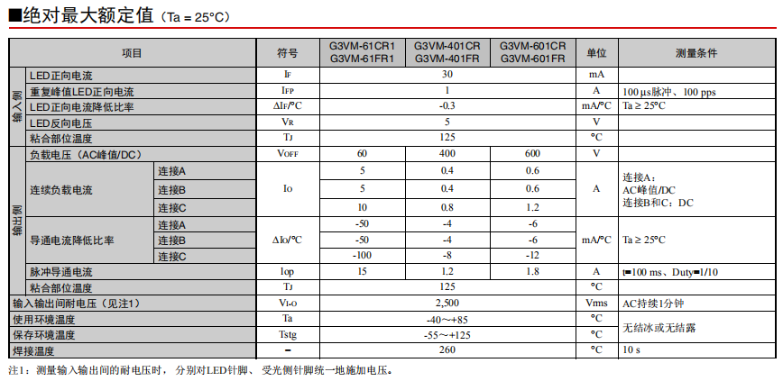 G3VM-61CR1/61FR1 MOS FET歐姆龍繼電器
