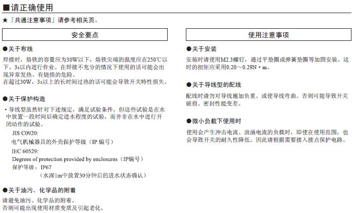 針狀按鈕型有自由位置和動作限度位置、擺桿為動作限度位置時的值。 接點為開路和閉路1ms以內。 |