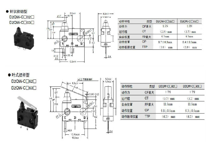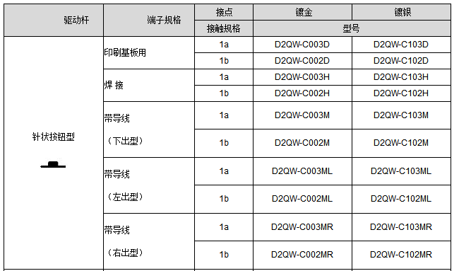 D2QW系列 密封型極小型基本開關 高可靠性和耐環境性兼備的長行程密封型開關