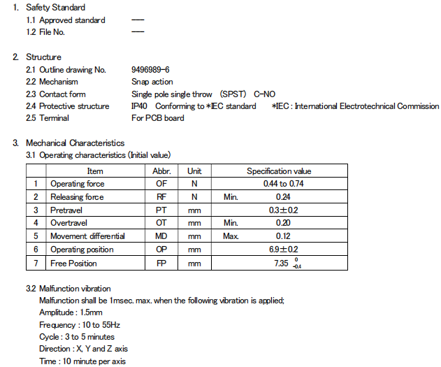 印刷基板用端子還備有獨立端子、直角端子。鼠標開關的型號有: