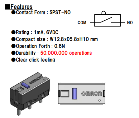 D2FC-F-K(50M)5000萬次鼠標(biāo)開關(guān)