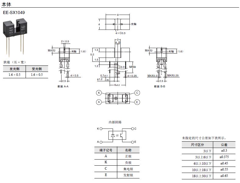 EE-SX1049 微型光電傳感器(透過(guò)型)
